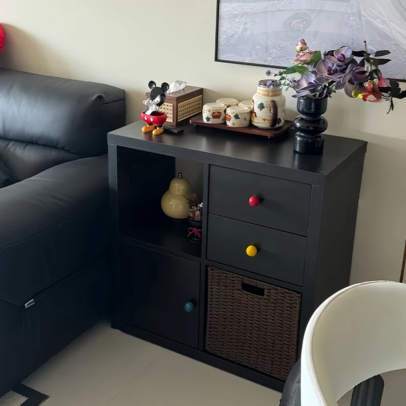 学生必見!寝室やリビングに最適な角型本棚キャビネット、収納力抜群の引き出し付きで、埃を防ぎながらおしゃれに整理整頓。落地式で安定感抜群、空間を有効活用できる便利な収納ラック!