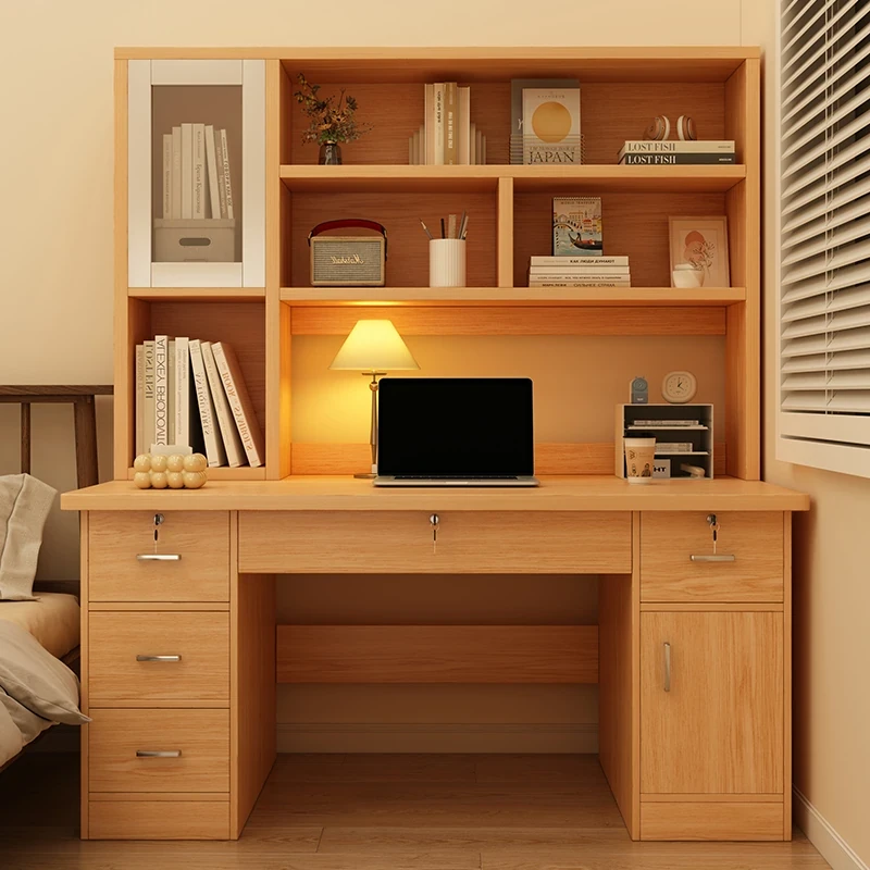 収納力抜群!デスクと本棚が一体化したおしゃれな書斎デスク。引き出し付きで使いやすさ抜群!女の子の寝室や自宅学習に最適な実木脚のスタイリッシュなデザイン。勉強も楽しくなる、あなたの理想の学習環境を実現します。