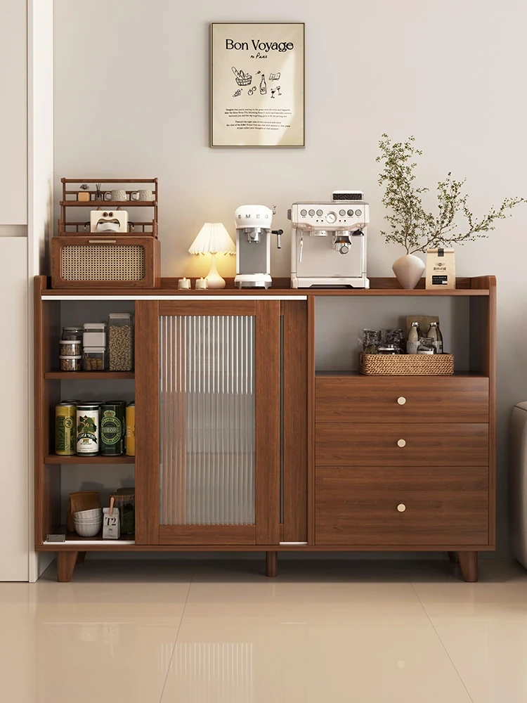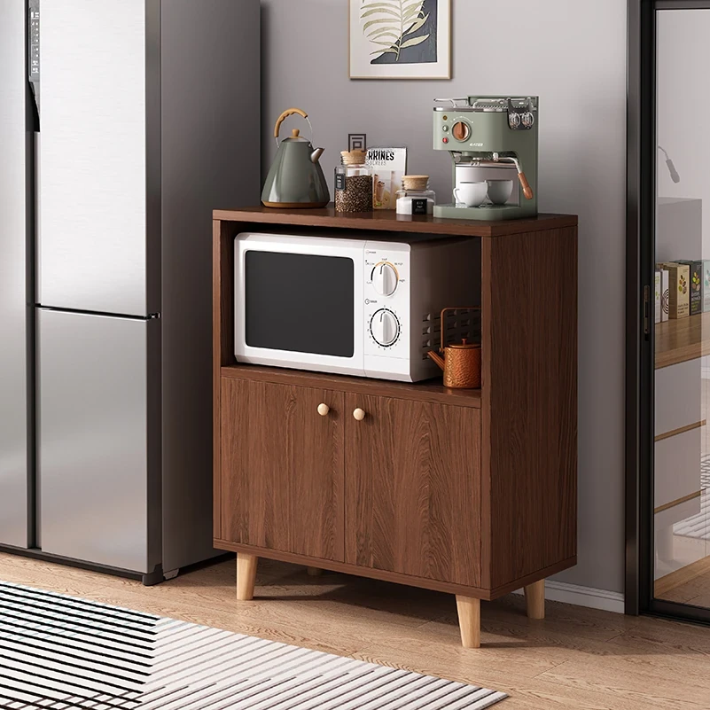 おしゃれなリビングにぴったり!リアルウッド調の壁面収納キャビネット - コンパクトで便利な小型収納、サイドボードとしても活躍!食器や小物の整理に最適です。