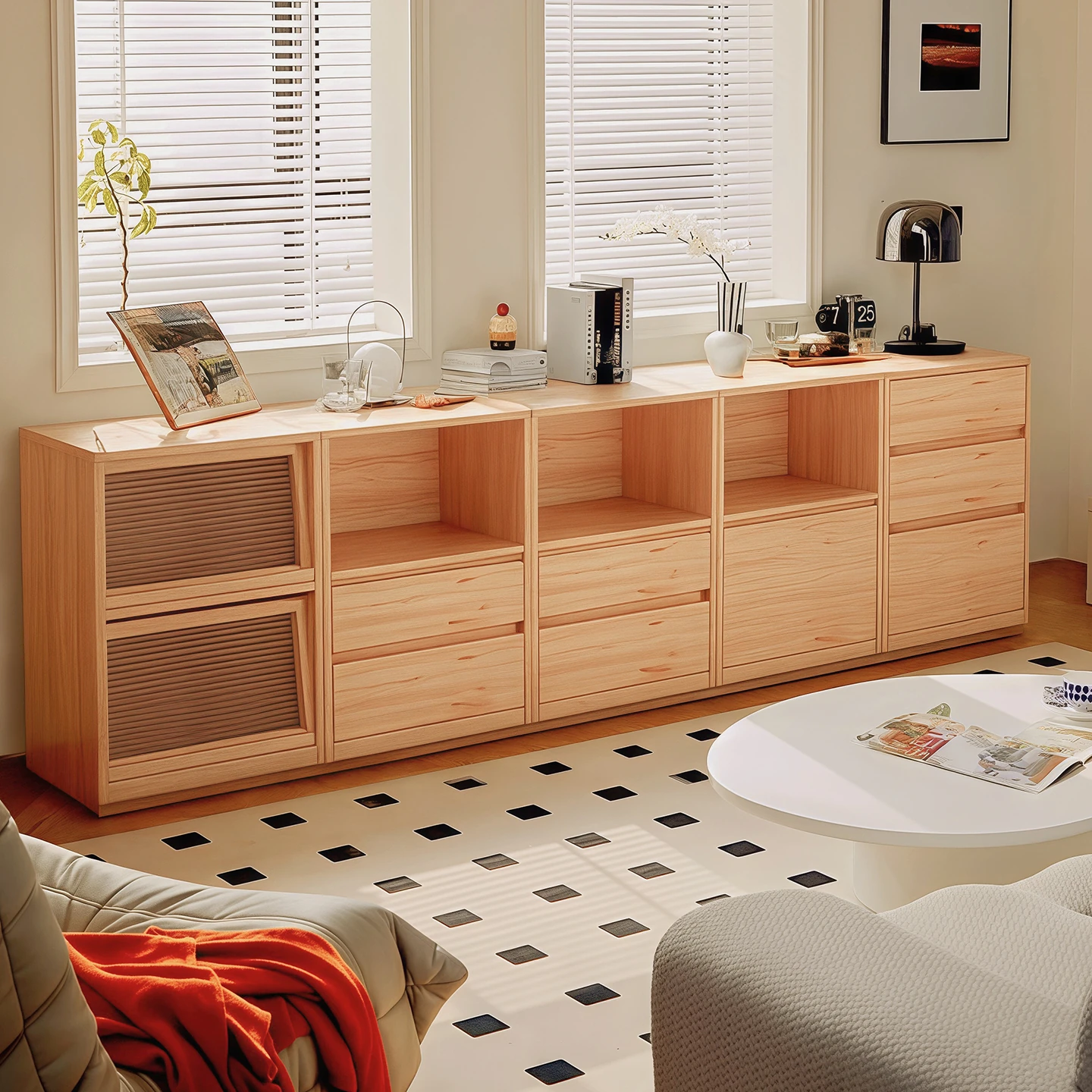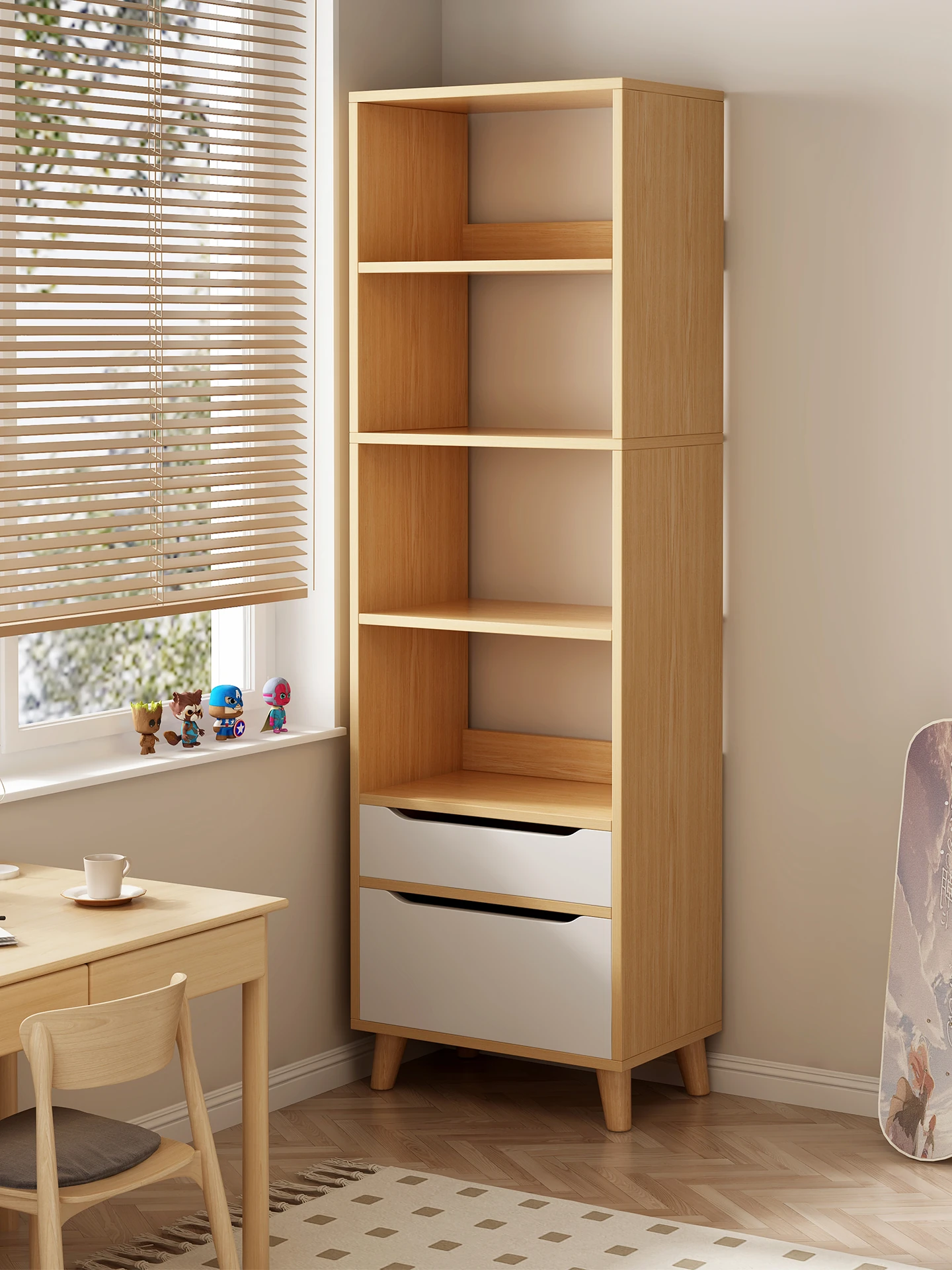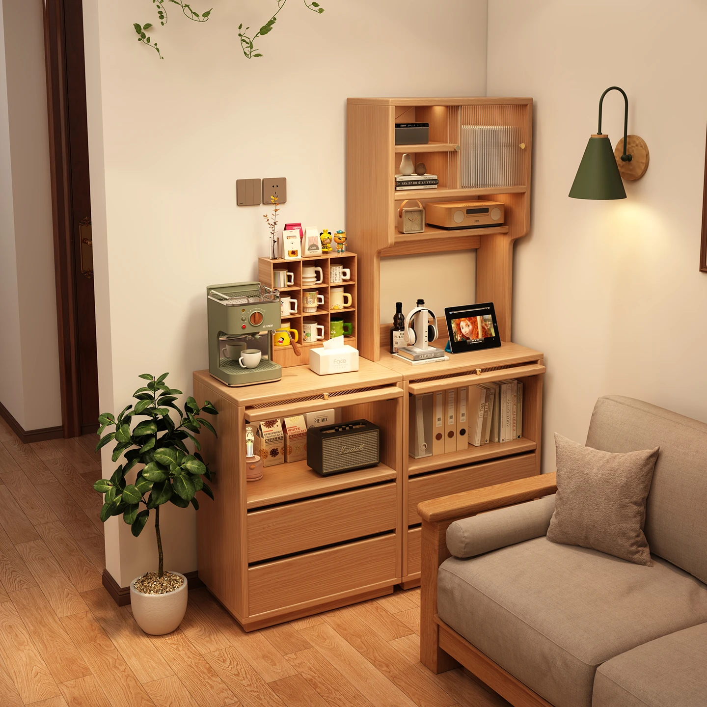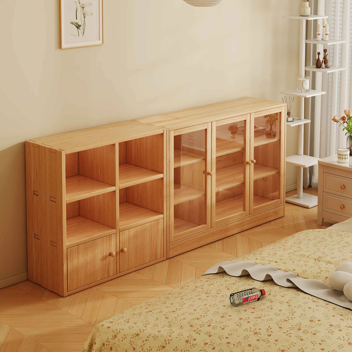 無垢材のフロア書棚 - 防塵グリッド収納キャビネット、ナチュラルウッドスタイルでリビングルームにぴったり!ビリーブックシェルフとしても最適な収納力を誇ります。おしゃれで機能的な収納を実現!