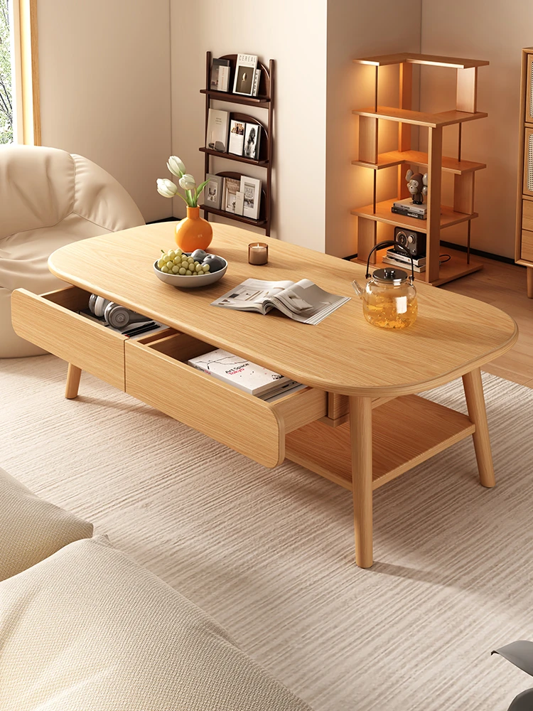 2025年新作!シンプルでおしゃれなリビング用ウッド調2段引き出しテーブル - 小型住宅に最適なコーヒーテーブル。使いやすさとデザイン性を兼ね備え、あなたの居間にぴったりの一品です!