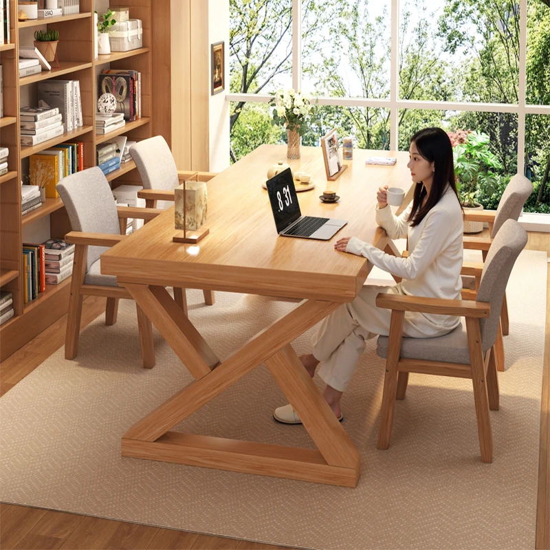 シンプルでスタイリッシュなホームオフィスデスク - リビングにぴったりのロングテーブル!読書、学習、仕事に最適な大容量デザイン。快適な作業環境を実現する長方形デスク。