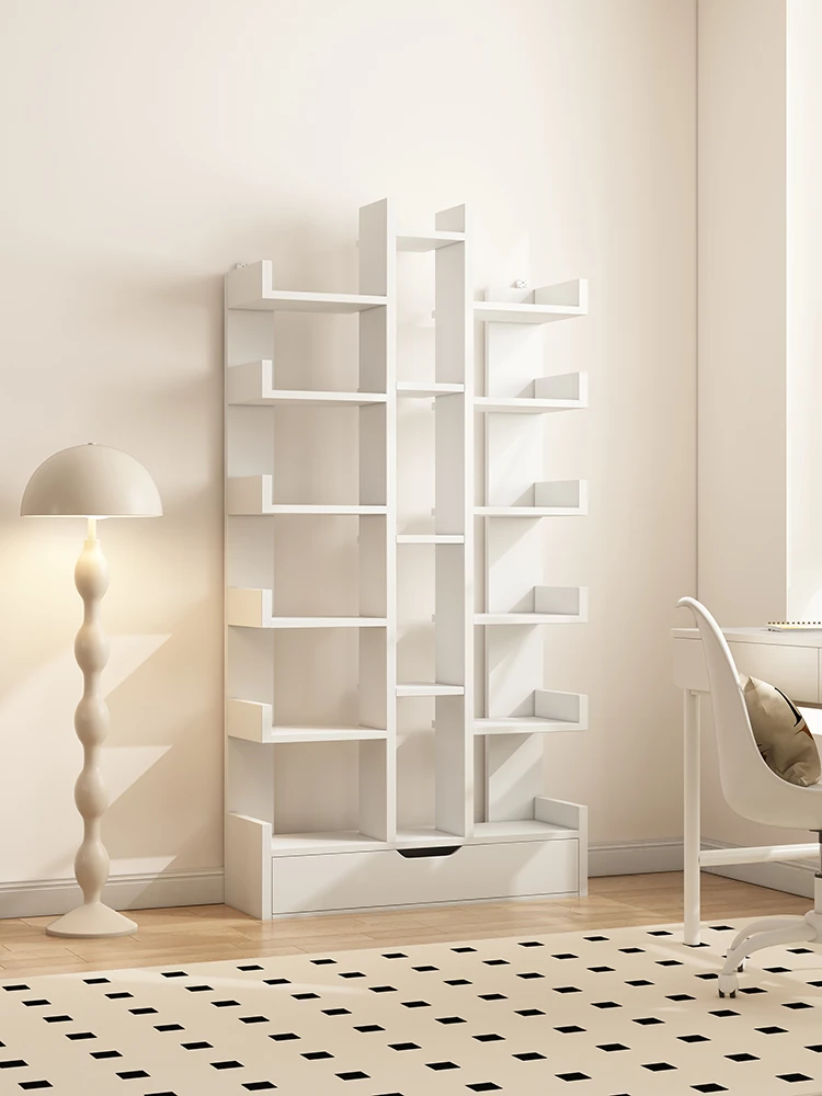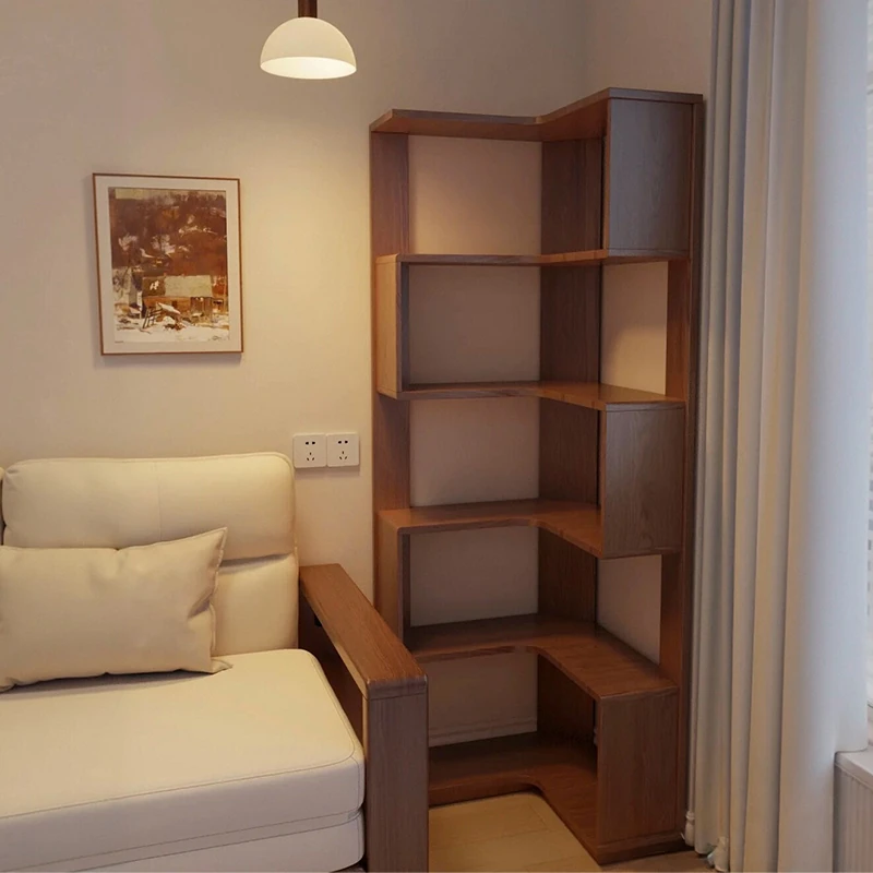 角度を活かしたスタイリッシュなフロアシェルフ!リビングにぴったりの角棚、家庭用の壁際収納、シンプルな学生用書棚としても最適。限られたスペースを有効活用し、おしゃれなインテリアを演出!
