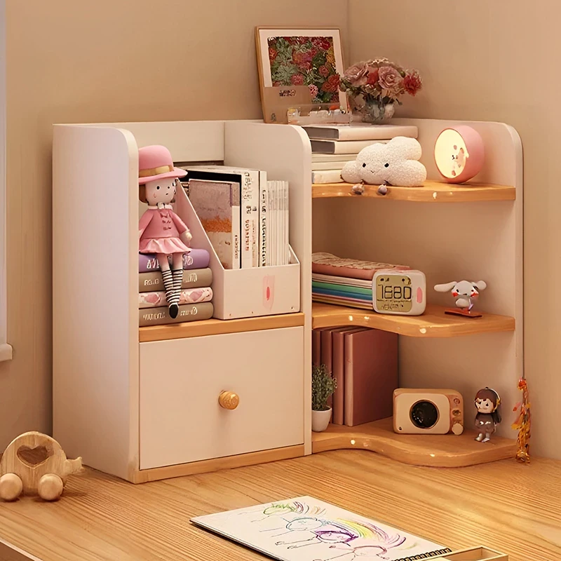 デスク用コーナーラック - 学生に最適!多層収納でデスク周りをスッキリ整理。コンパクトで省スペース、使い勝手抜群のリフォームラック!あなたの学習環境をもっと快適に!