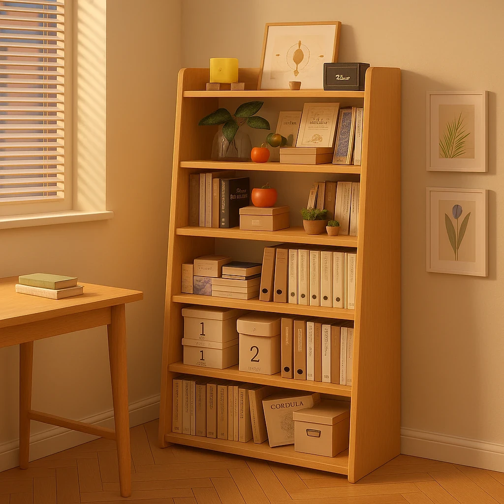 壁に寄せられる省スペースの書棚兼収納ラック - リビングや学生部屋に最適!シンプルで使いやすく、収納力抜群の書庫。おしゃれなデザインで、どんなインテリアにもマッチします!