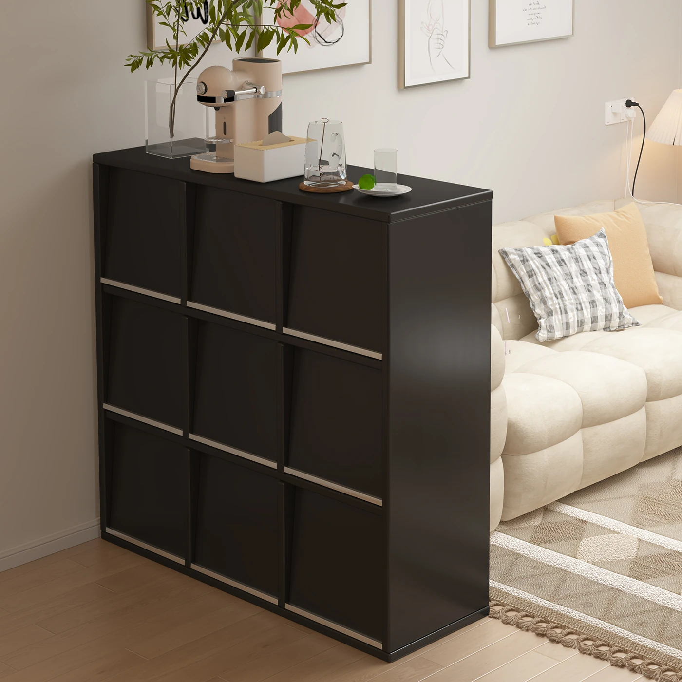 黒い立てかけ式本棚 - ソファやリビングにぴったりの収納力抜群!家族の思い出やお気に入りの本を美しくディスプレイ。9つの引き出しで整理整頓も簡単。おしゃれで機能的な収納家具!