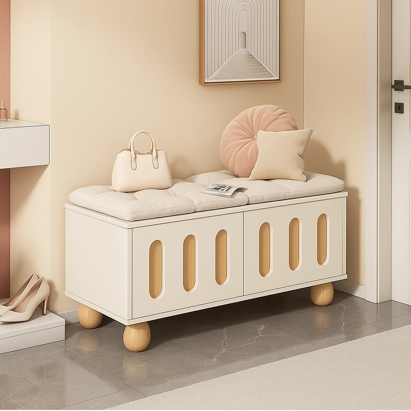 クリーミーな風合いの靴置きベンチ - 家庭用・玄関用・座れる靴ラック!小スペースに最適な一体型シューズベンチで、快適に靴を履けます。おしゃれで機能的なデザインで、入居時のおしゃれな印象を演出!