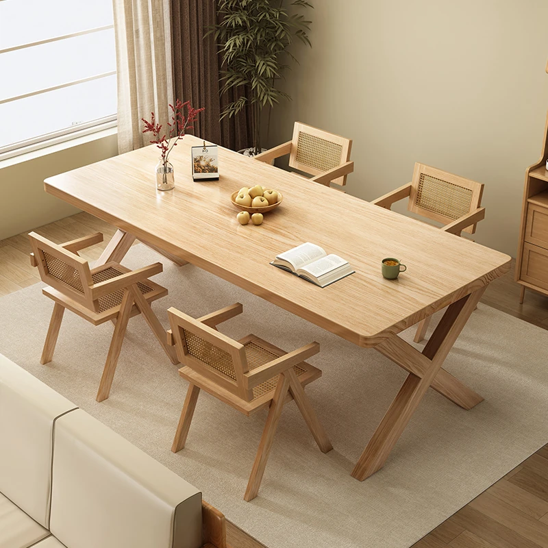 全実木のダイニングテーブル|家庭用長方形テーブル|食事や会話に最適|リビングにぴったりなナチュラルウッドスタイルの大板テーブル&チェアセット