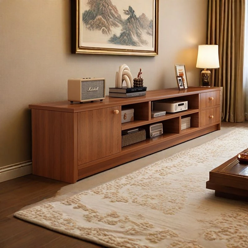 新中式テレビボード - リビングルーム用収納キャビネット、2025年新作!コンパクトな小型住宅に最適な一体型デザインで、スタイリッシュな空間を演出します。収納力抜群で、すっきりとしたお部屋を実現!