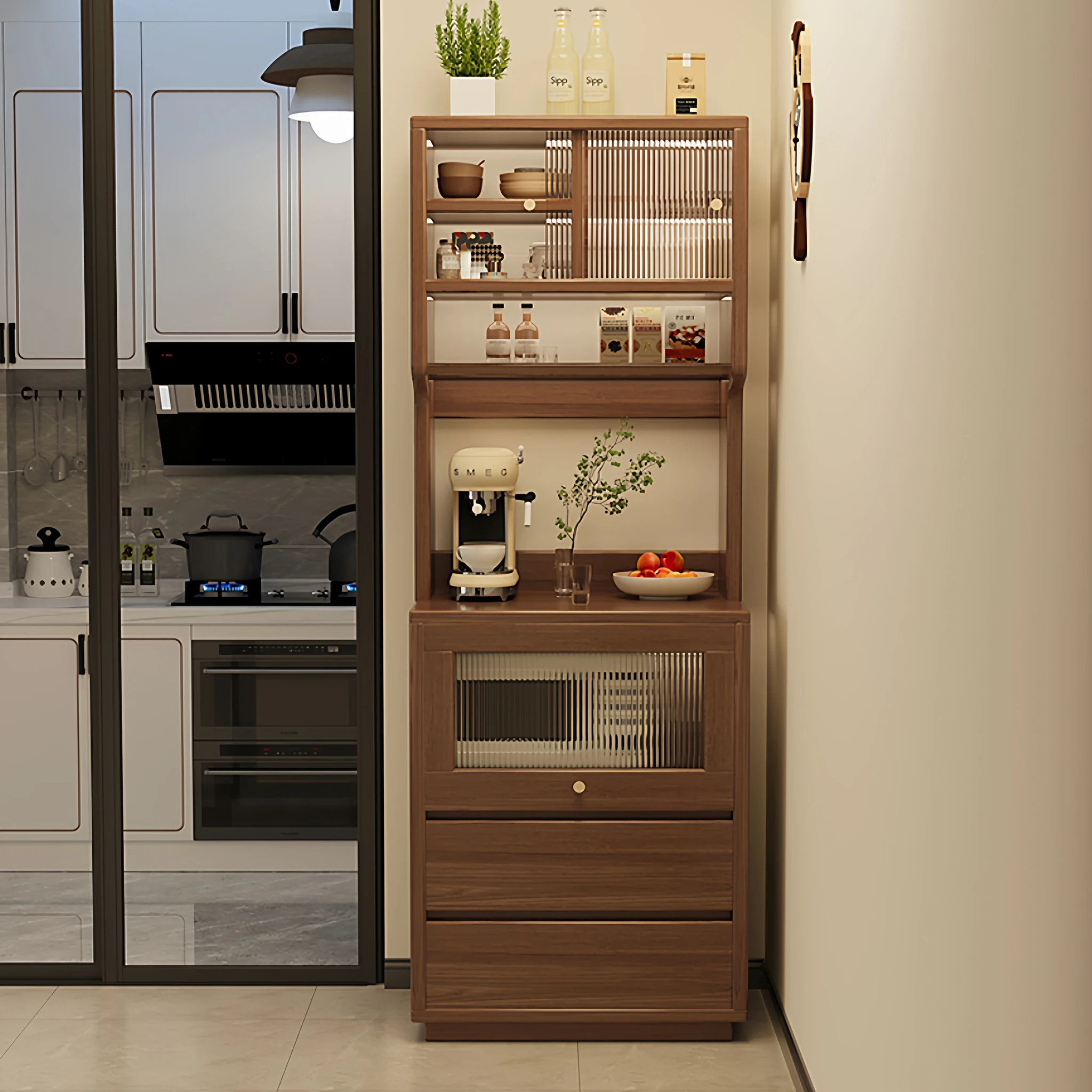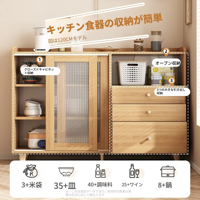 和風スタイルの壁掛け一体型無垢材サイドボード - リビングやキッチンに最適なティーキャビネット・収納キャビネット。美しいデザインで、あなたの空間をより魅力的に演出します!