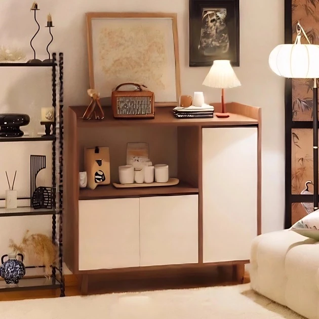 新中式デザインのティーキャビネット - リビングに最適な小型ソファサイドキャビネット。壁にぴったりフィットし、スタイリッシュな収納スペースを提供。おしゃれで実用的な置物収納に最適!