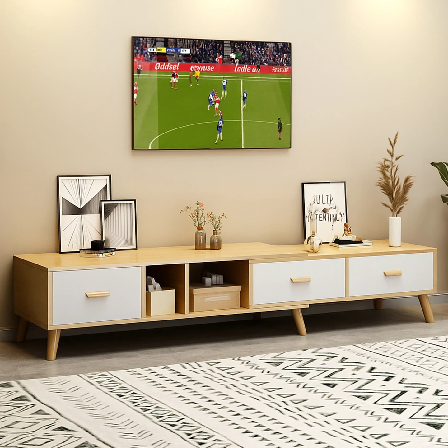 北欧スタイルのテレビキャビネット - 2025年新作!リビングに最適な伸縮式収納一体型、コンパクトな小型住宅にもぴったり!おしゃれで機能的なデザインで、あなたのインテリアを引き立てます。