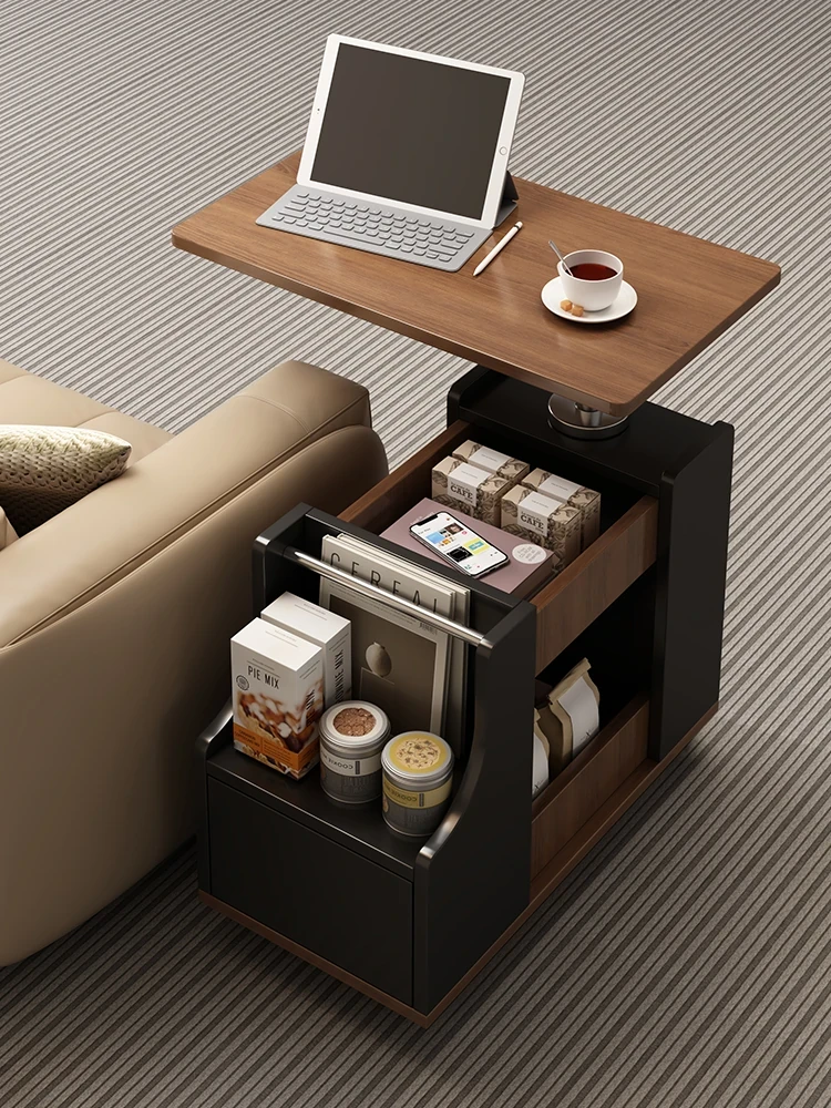 昇降式モバイル小型テーブル - スタイリッシュな高級感を演出する多機能ソファサイドキャビネット!狭いお部屋にぴったりのコンパクトデザイン。おしゃれなリビング空間を実現します!