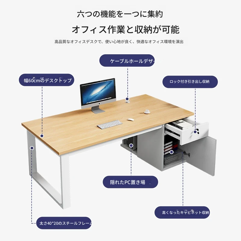 シンプルでモダンなオフィスデスクセット|快適な作業空間を実現する従業員用デスク&チェア|家庭用にもおすすめ、使いやすいコンピューターデスク!