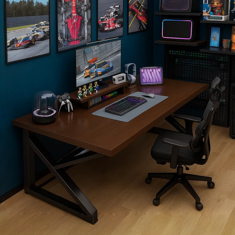 シンプルでおしゃれなダブルデスク|家庭用・学生向け|作業や勉強に最適なデザイン|快適なゲーミング体験を提供するPCデスク|スペースを有効活用!