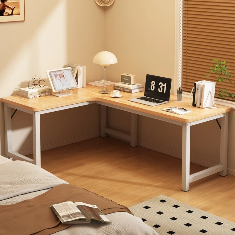 L字型コーナーコンピューターデスク|家用一体型書斎デスク|収納力抜群の本棚付き|寝室やオフィスに最適な2人用デスク|壁際にぴったりフィットするコーナーライティングデスク