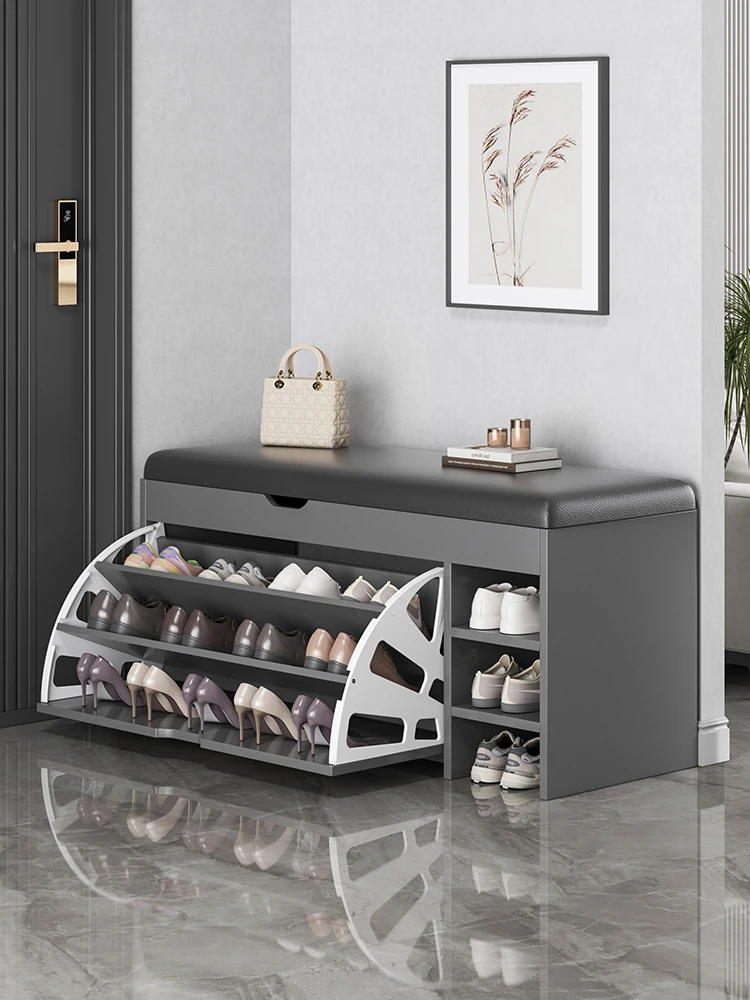 玄関用シューズラック 多層設計・コンパクト・収納力抜群!防塵・小型スペースに最適なシューズキャビネット&座れる靴置きベンチ付き。おしゃれで実用的な靴収納を実現!