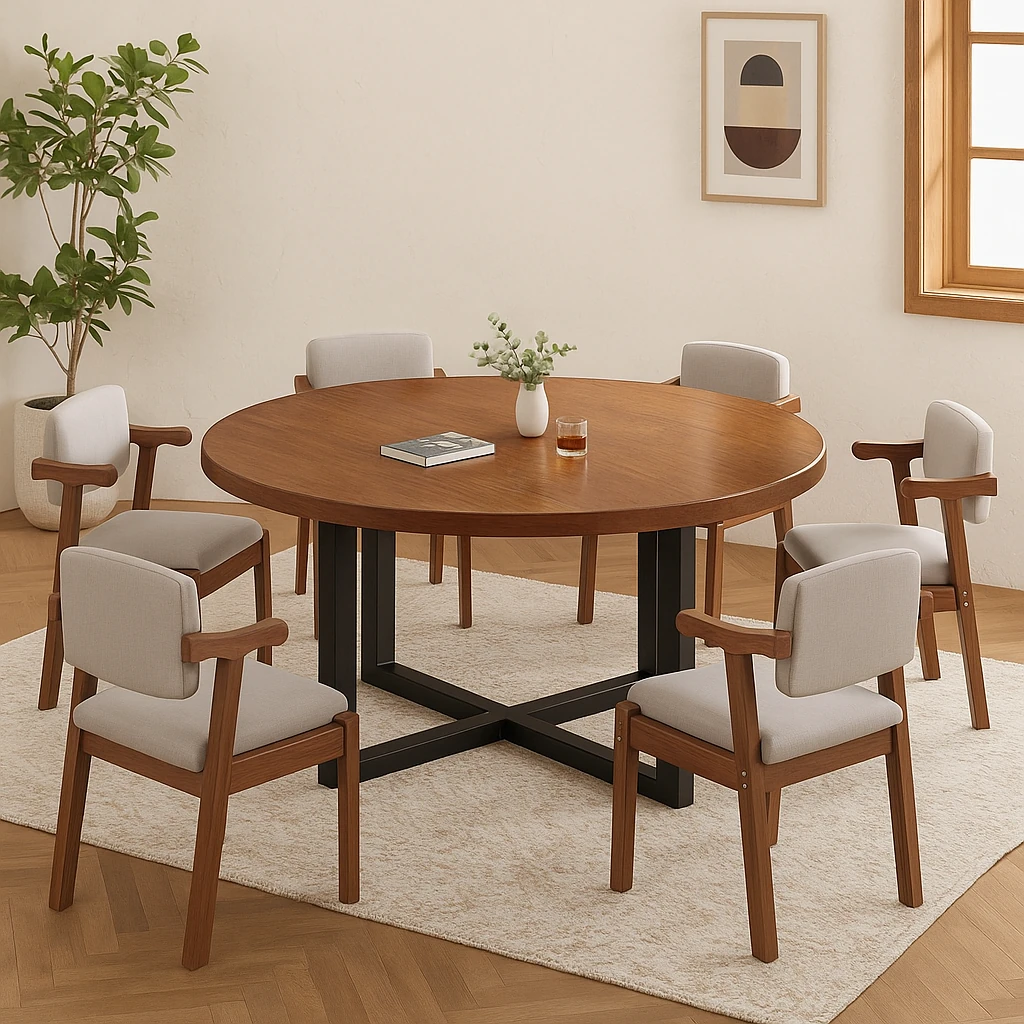 リビングにぴったり!シンプルでスタイリッシュな小型円形ダイニングテーブルとチェアのセット。モダンなデザインで軽やかな贅沢感を演出。限られたスペースでも快適に食事を楽しめる!